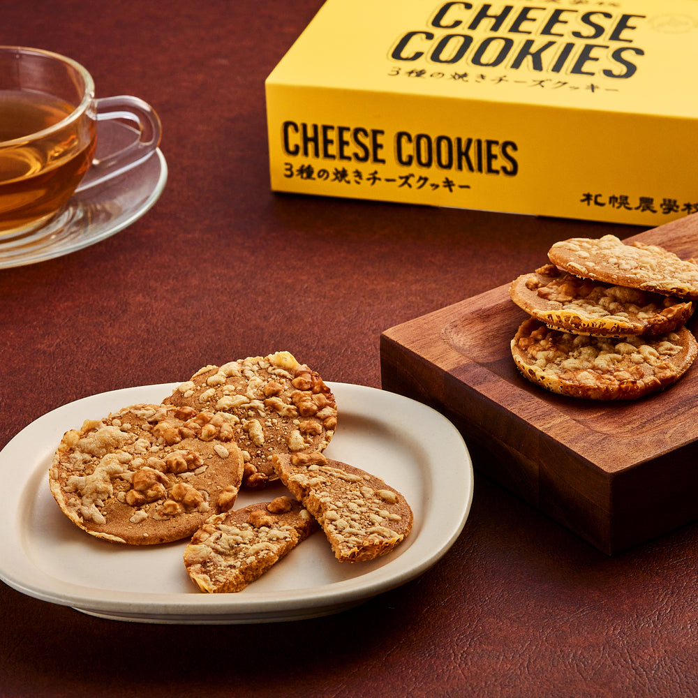 在加入大量帕瑪森起司的餅乾麵糰上,鋪上三種起司烘烤而成。香氣濃郁,口感酥脆爽脆,濃厚風味是其特色。VarietySnacks & Cookies -