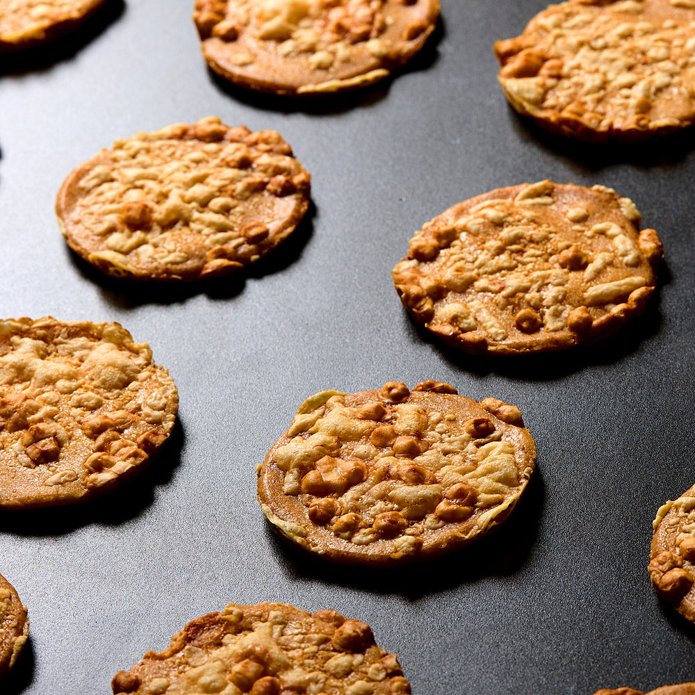 酥脆香濃的可麗酥與派皮,以及杏仁脆片帶來的愉悅口感。揉入奶油與杏仁粉的酥脆餅乾麵糰,烘烤後散發濃郁香氣與豐富風味。Snacks & Cookies -