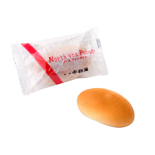 白豆沙加入精選奶油、牛奶與蛋黃,製成桃山餡。薄皮包裹著鬆軟內餡,外觀仿北海道馬鈴薯。Japanese Sweets -