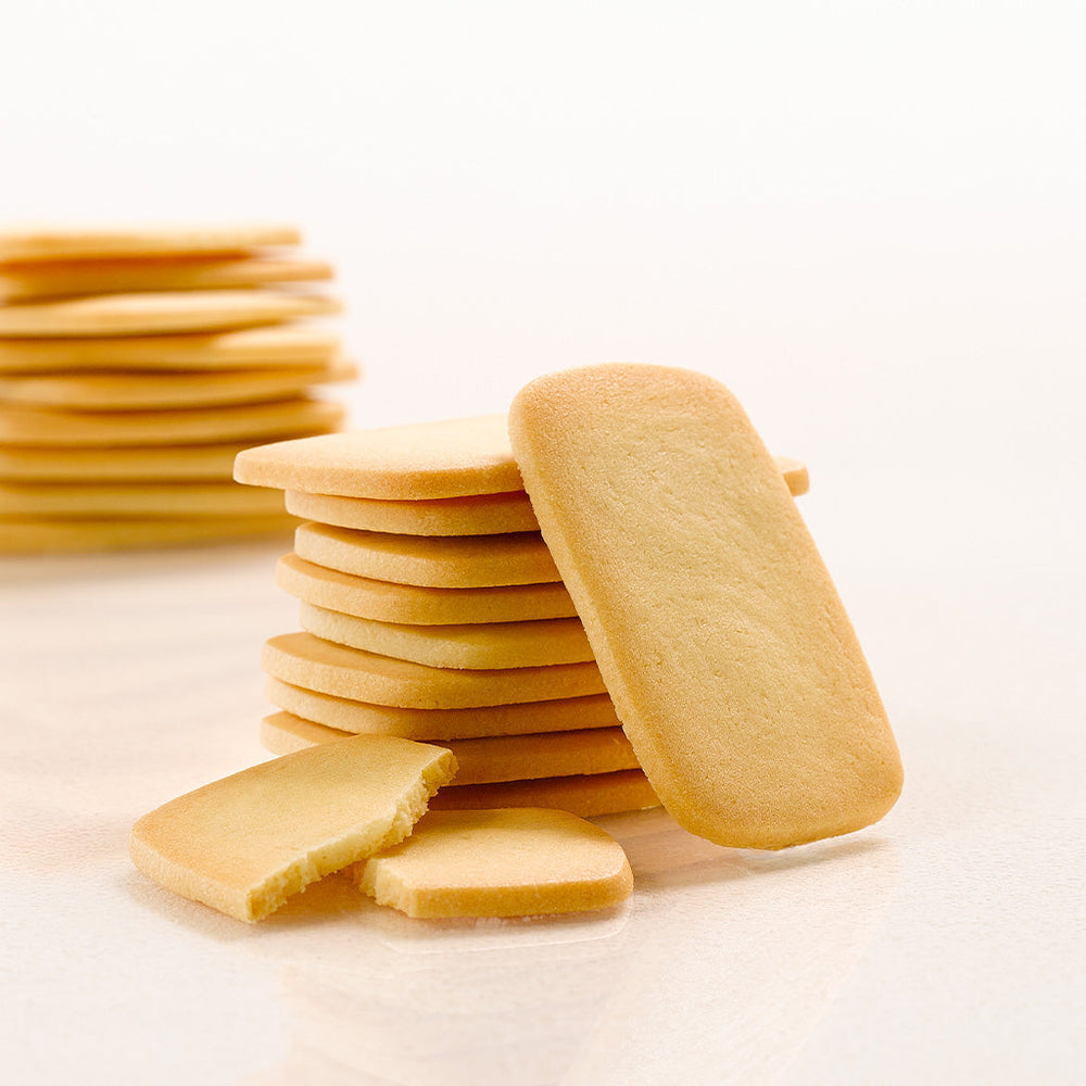 散發奶油與牛奶香氣,口感酥脆細緻的餅乾。VarietySnacks & Cookies -