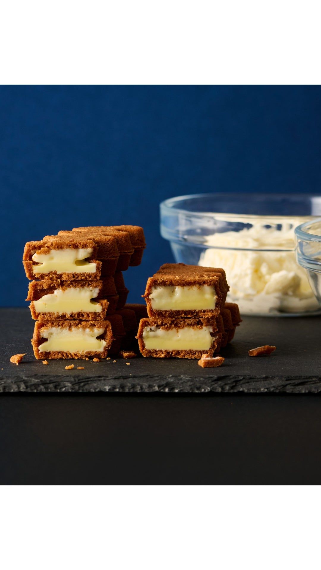 雙重芝士奶油夾心曲奇 生食感雙層起司夾心餅乾 酥脆的杏仁粉餅乾中,夾入濃郁的奶油餡與起司奶油,層層堆疊出濃厚口感。Variety -